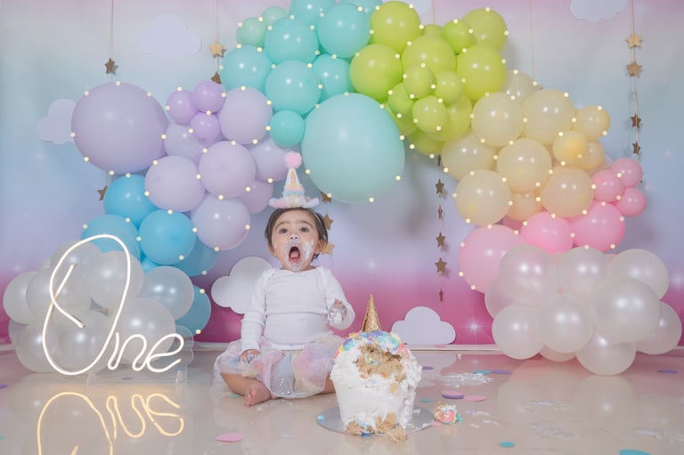 ¡Celebra el primer aniversario de tu pequeño con una sesión Smash the Cake! Capturamos la felicidad, la diversión y las caritas cubiertas de pastel en un ambiente vibrante y lleno de emoción.